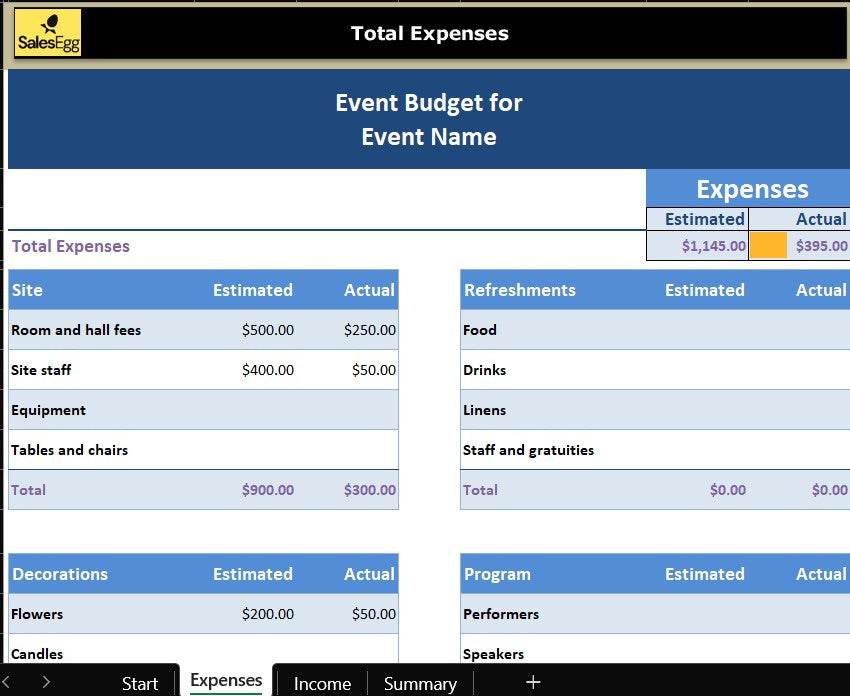 This Excel template lets event planners, organizers, and nonprofits effortlessly track estimated vs. actual income and expenses, all in a clean, auto-calculating format. It includes separate tabs for income, expenses, and a visual summary that instantly reflects your profit/loss. Whether you're organizing a fundraiser, conference, or company retreat, this tool keeps you financially in control from start to finish. Easy to customize and ready to impress your team or sponsors!